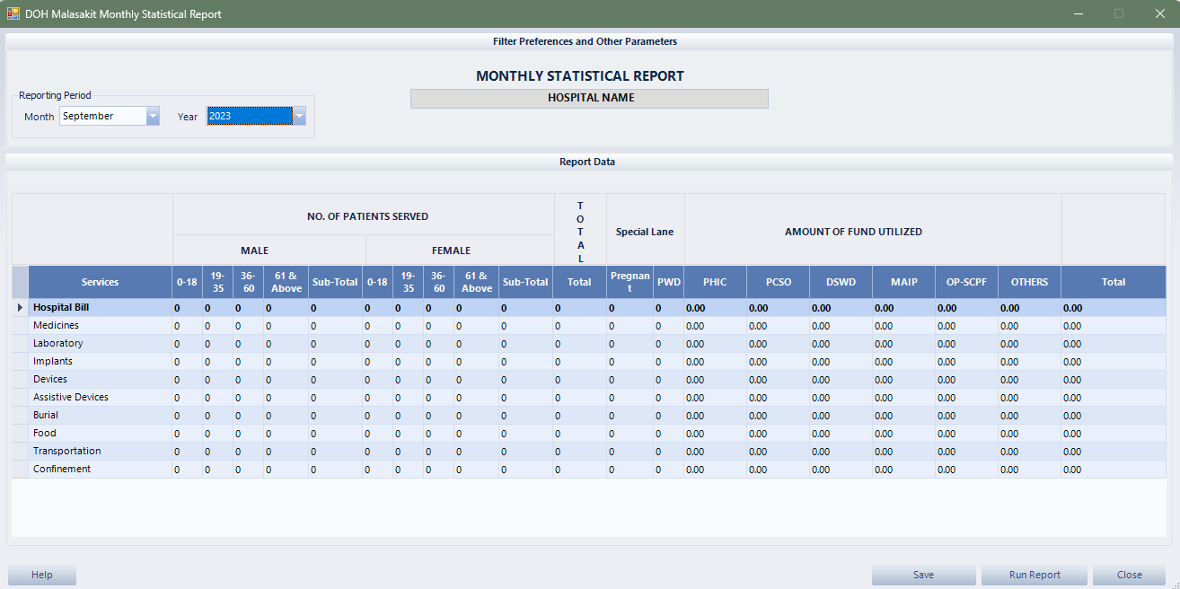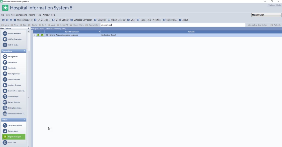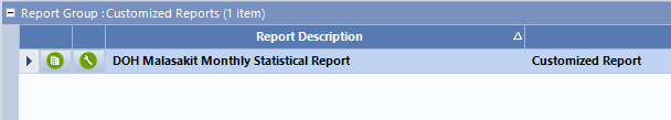 A new report titled "DOH Malasakit Monthly Statistical Report" is currently accessible within the report manager module.