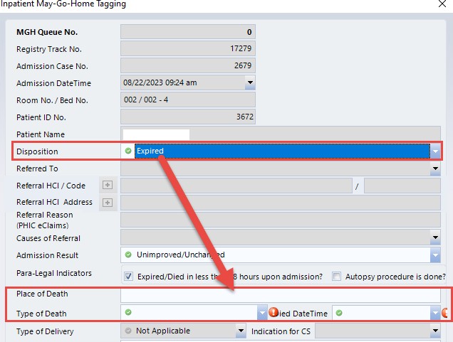 CF4 – Outcome of Treatment – PHIC Disposition Code