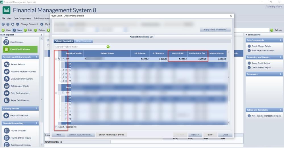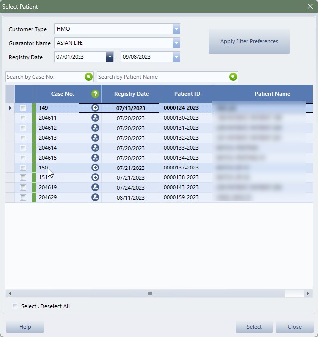 1. Adding a "Select/Deselect All" feature for transactions. You can manually mark transactions by clicking the checkbox on the left side of each transaction. When applying a new filter (Applying Filter Preferences), the selected transactions will reset. Nonetheless, you should retain the ability to filter transactions by patient name without affecting the selected transactions.