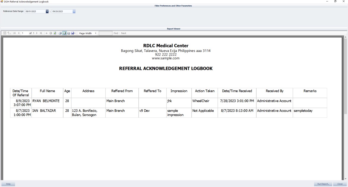 A new report titled “DOH Unified Disease Registry System - Perpetrator Information Sheet " is currently accessible within the report manager module.
