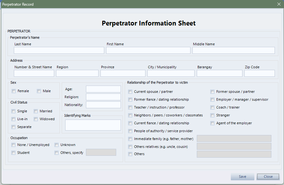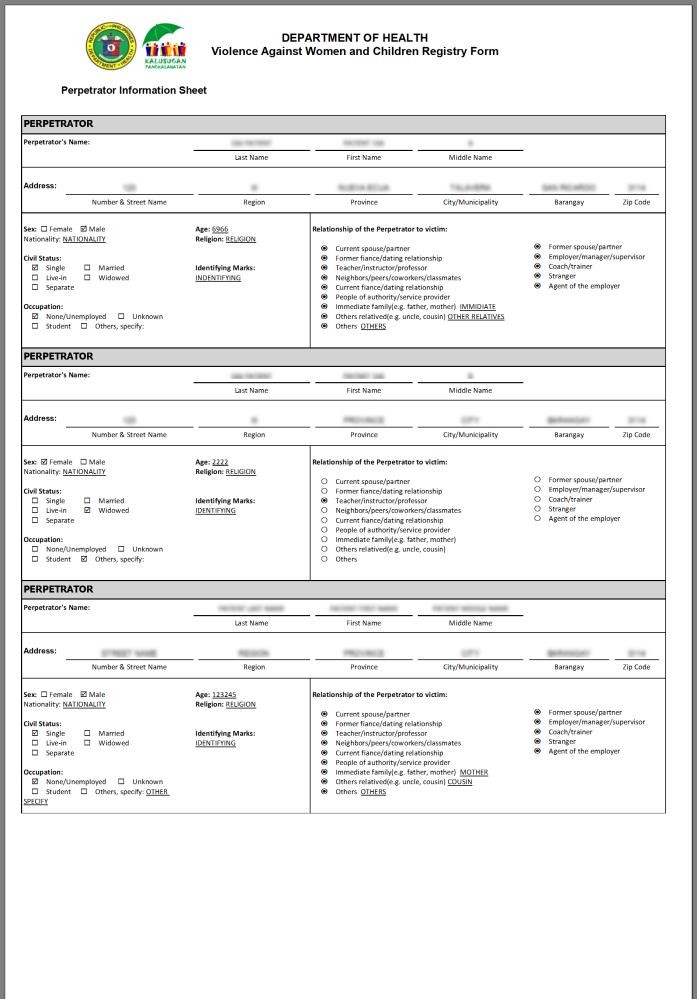 DOH Unified Disease Registry System - Perpetrator Information Sheet