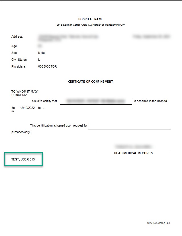 The certificate of confinement was improved with a Username parameter both for standard and custom setup. Client must add username parameter to their existing RDL for Certificate of Confinement Report. If the client is not using the Standard RDL.