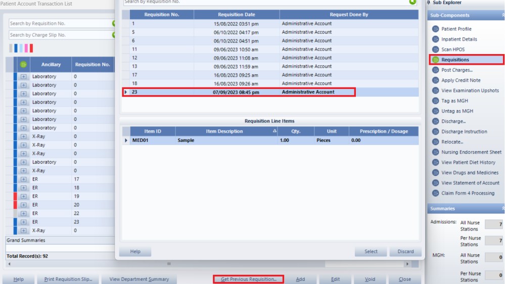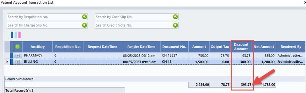 Add the Total Discount Amount under Patient Account Transaction List's Requisition and Hospital Charges.