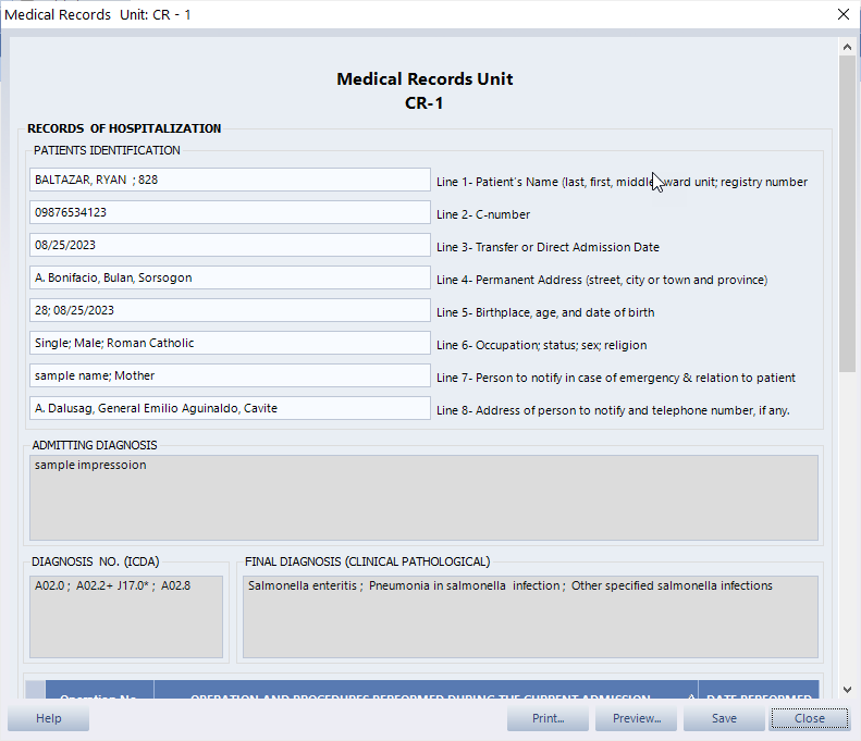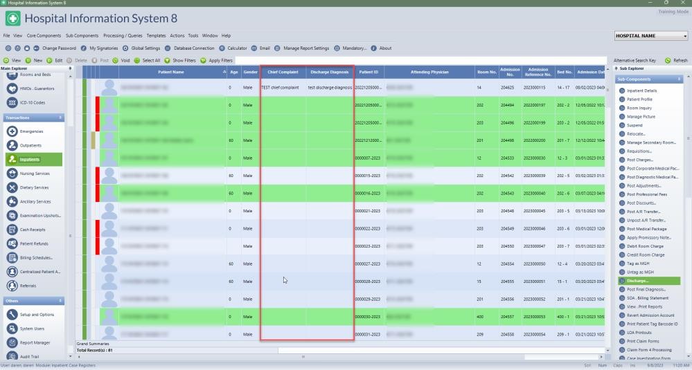 Additional column “Chief Complaint and discharge diagnosis” for ER/OPD/IPD module