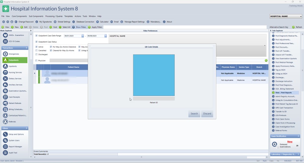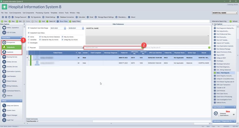 2. Once enable search by QRCode is now available in Inpatient, Emergency, and Outpatients Modules
