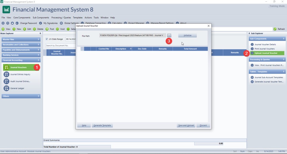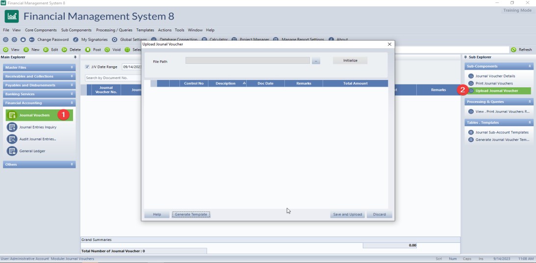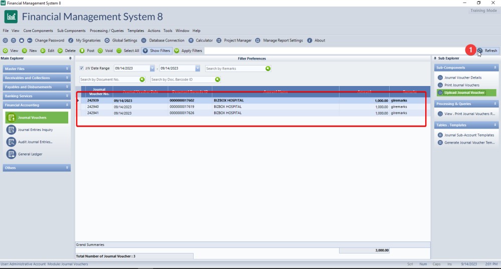CLICK REFRESH to REFRESH THE JOURNAL VOUCHER MODULE AND SEE YOUR UPLOAED JOURNAL VOUCHERS.