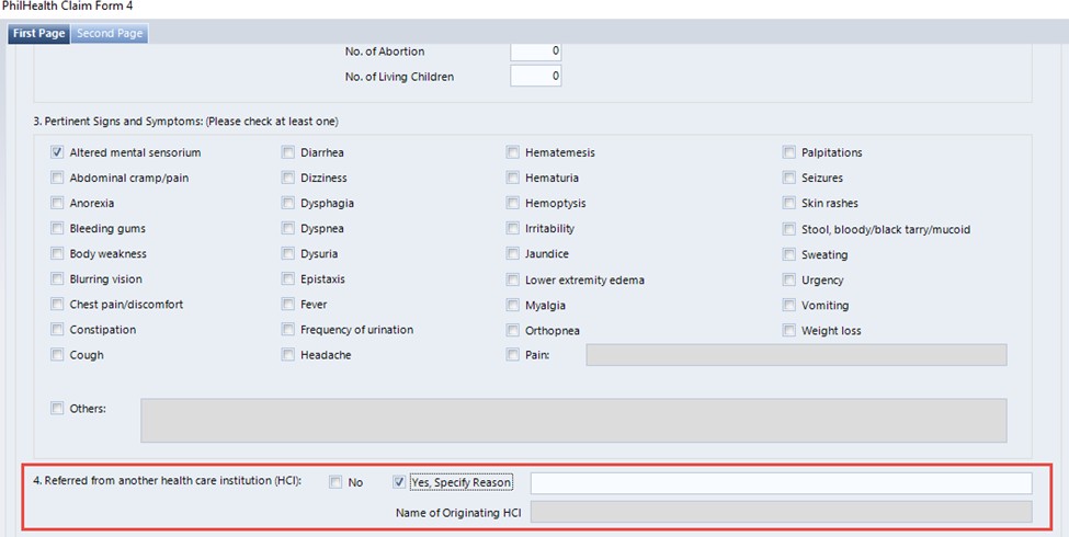 CF4 – Referred from Another Health Care Institution (HCI) - Enable checkbox with Setup