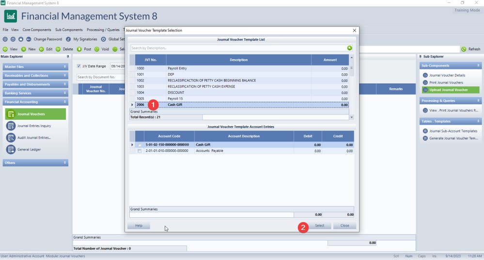 a. Click Generate Template opens the Journal Voucher Template selection which will be the basis of the template. Select a Simple Journal Voucher Template.
