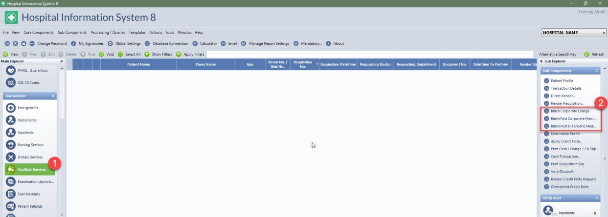 Ancillary Services - Batch Charging of Patient under Corporate Account