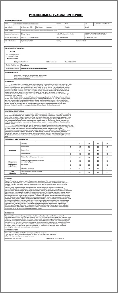 REPORTS - PSYCHOLOGICAL EVALUATION