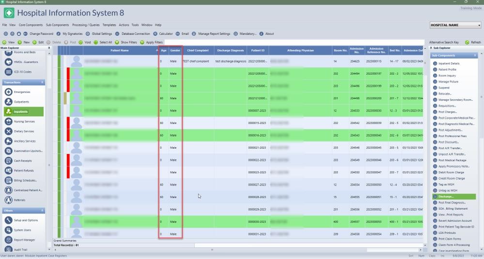Additional Patient Age and Gender Column for ER/IPD/OPD/Nursing Services Module