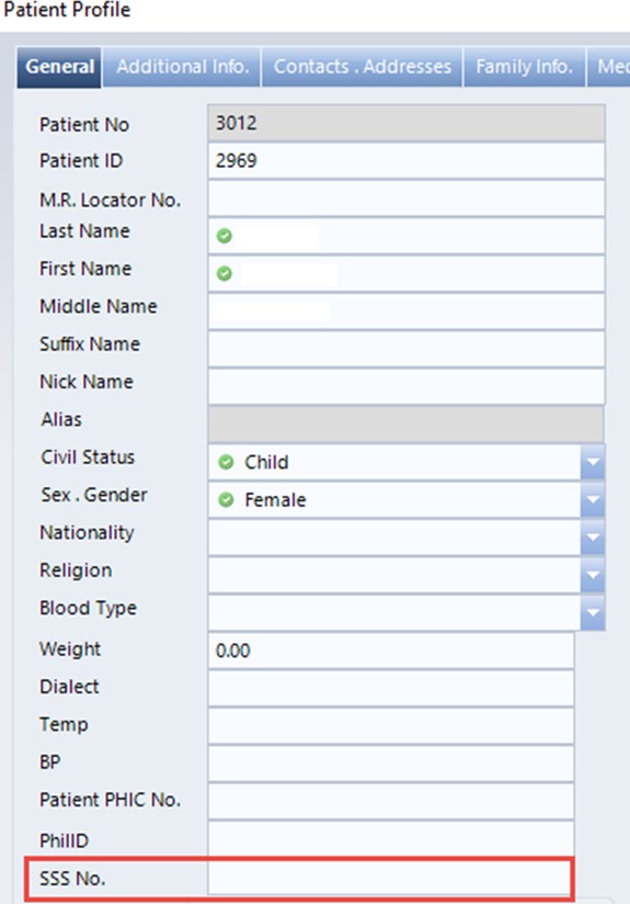Add the Social Security System Number (SSS No.) field into the Patient Profile.