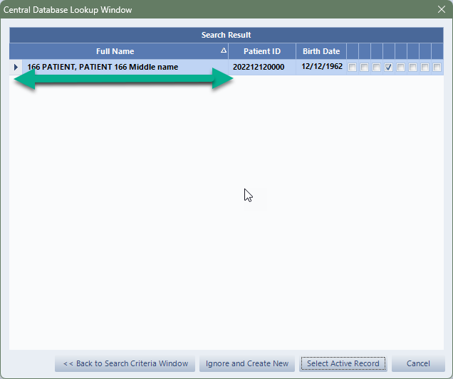 Modify the length of the central database lookup according to the character count in the patient's name.