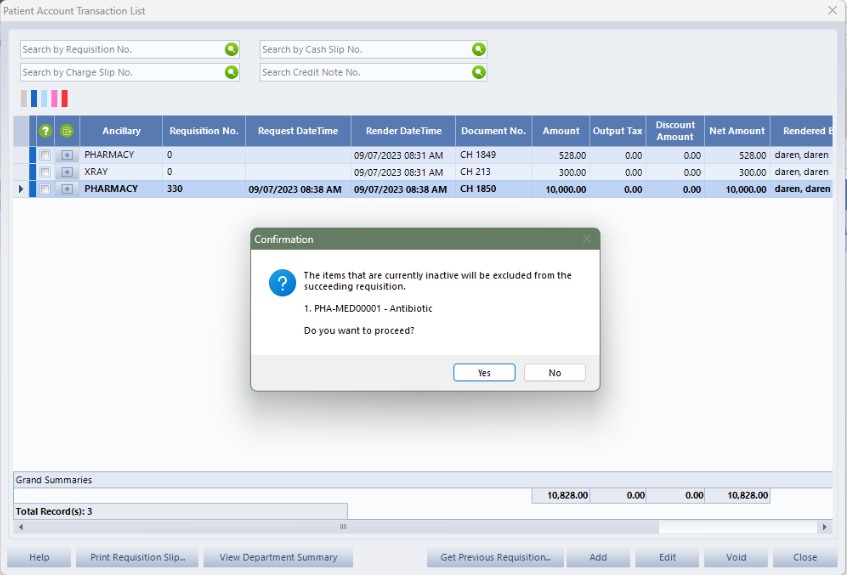 In the requisition process, we will omit all inactive items that were previously charged in the previous requisition.