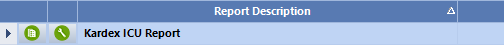 A new report titled "KARDEX ICU Report" is currently accessible within the report manager module.