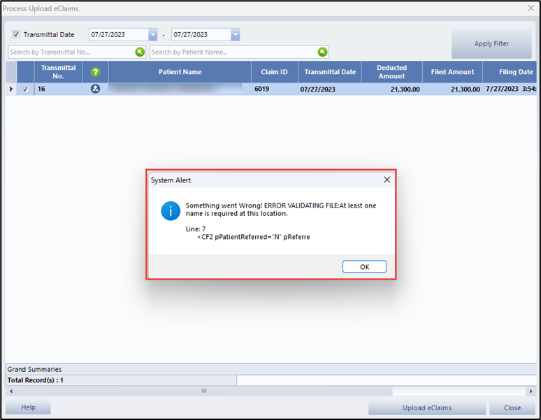 EP-063 Upload E-claims Error - ‘CF2 pPatientReferred =’N’ pReferre