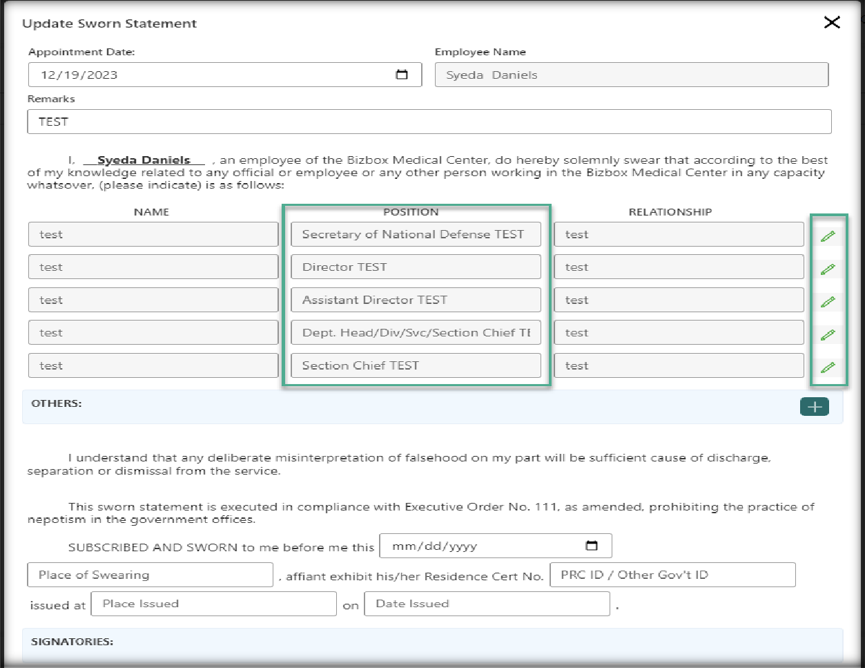 Position placeholder can now edit in sworn statement.
