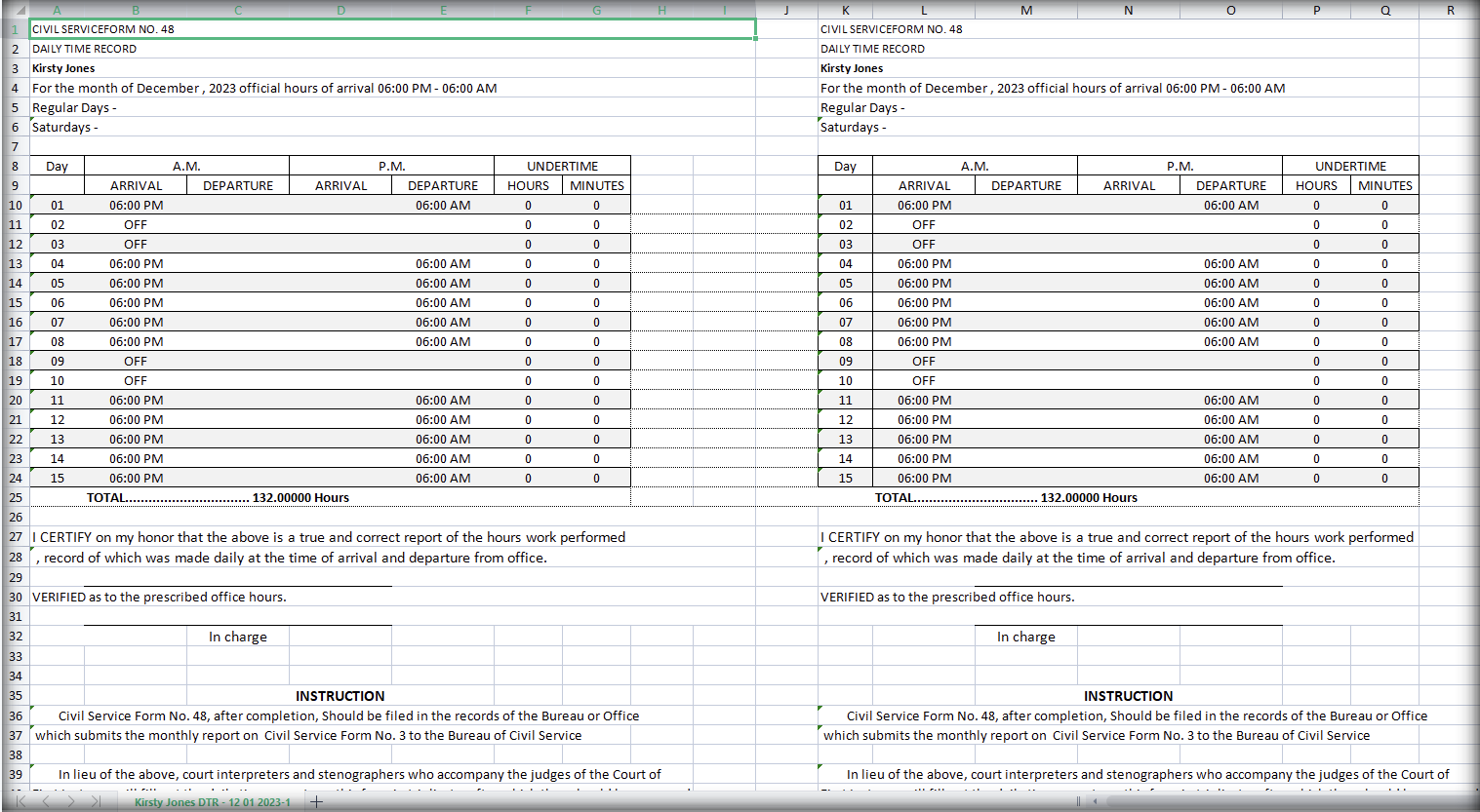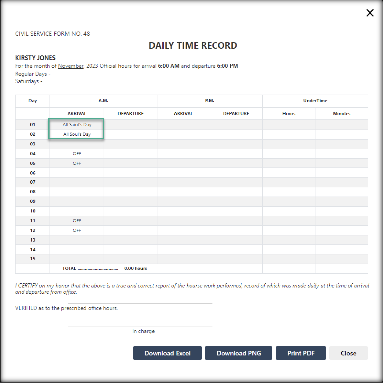 Timekeeping — Schedule & DTR — Daily Time Record — Download Excel