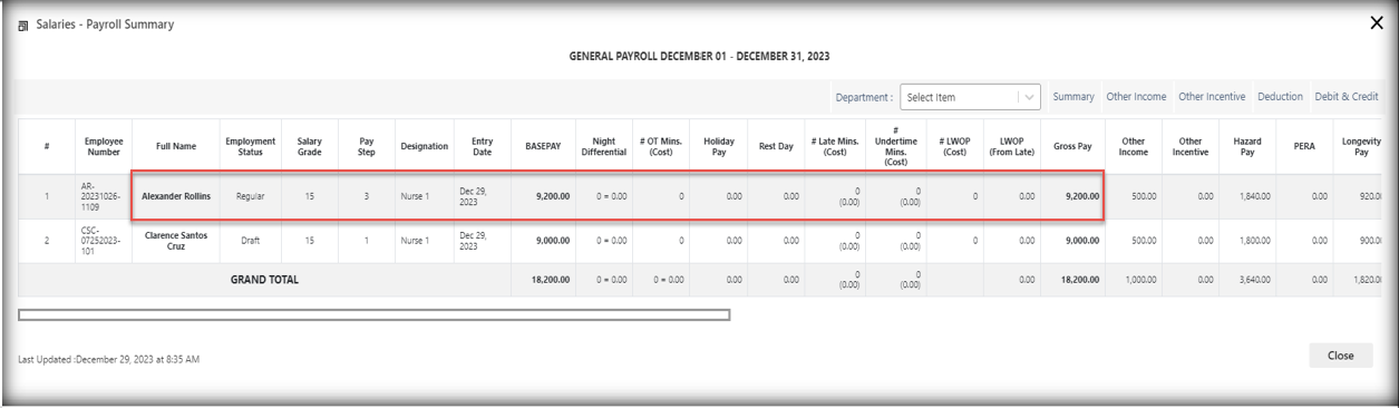 Effect in HRP & MyHRP and Salary Grade & Wage Rate includes the following: Payroll Summary