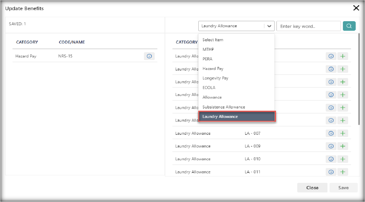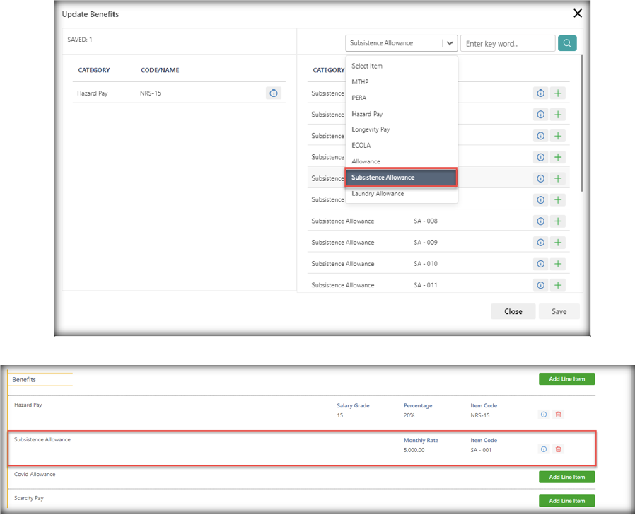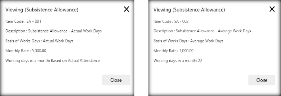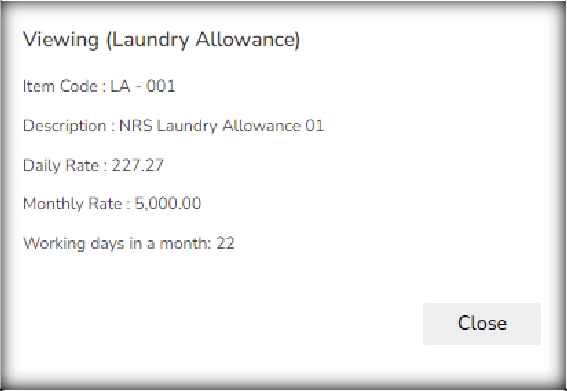 Note: Employee could only have 1 laundry allowance. Validation will also appear if the user tries to assign multiple subsistence allowances.