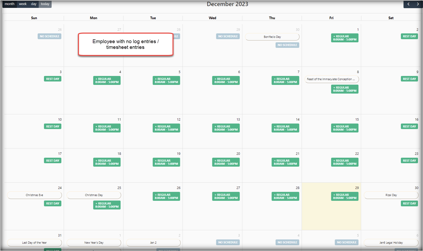 Monthly fixed gross pay will now be computed even if the employees do not have log entries/timesheet entries. Note: Setup must be enabled in setup and options.