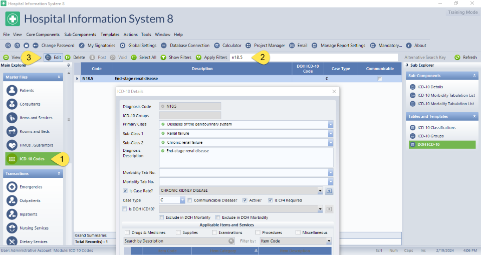 Note: Mapping the ICD-10 code to manually added DOH ICD-10 will cause partially uploaded concerns in the reports. To ensure accurate reporting, only use the system default codes provided by the DOH.